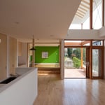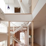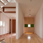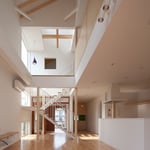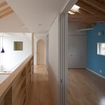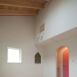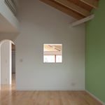 埼玉県の閑静な住宅地に建てられたの木造2階建ての戸建住宅です。 1階にはリビング等のパブリックなスペース、2階に個室等のプライベートなスペースが計画されています。家の中のどこにいても家族の気配が感じられるように、大きな吹抜けを設けて1階のリビングと2階の個室をてつなげています。漆喰や木、タイルの材質感を生かしつつ、白を基調にポップなアクセントカラーをつかったインテリアになりました。